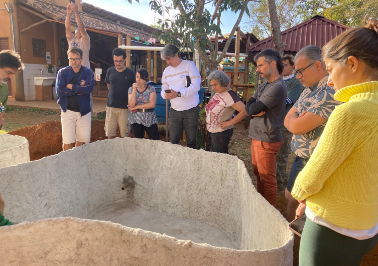 Nadu mostrou também como é feita a estrutura dos tanques, com a técnica do bambu-cimento. Flávio Negrão, arquiteto da equipe Becus falou sobre as características impressionantes do bambu, que pode ser chamado de “aço verde” por sua resistência aliada à maleabilidade. Lascas de bambu fixadas com arame são cobertas com tela de viveiro e sombrite para depois receberem a massa de areia, cimento, água e impermeabilizante que formará as paredes e a base dos tanques.